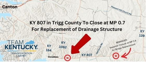 Drainage project to close portion of Donaldson Creek Road in Trigg Co.