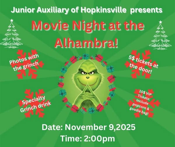 Kick off your holiday season early with the Junior Auxiliary of Hopkinsville! Join us for Movie Night at the Alhambra featuring The Grinch! Date: November 9, 2025 Time: 2:00 PM […]