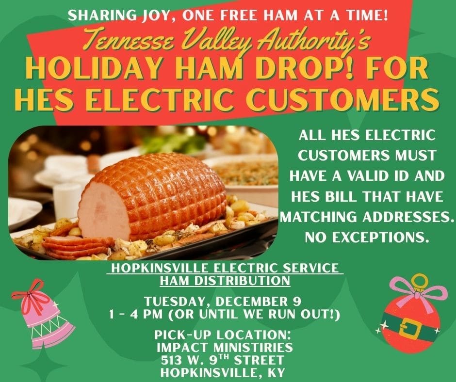 As the season of giving continues, Hopkinsville Electric System is inviting their customers to get free holiday hams. HES has partnered with the Tennessee Valley Authority and Impact Ministries to […]