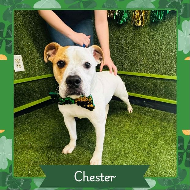 Chester is a long-timer at the animal shelter and we can’t figure out why! He’s sweet and gentle, food motivated, cute as a button and he’s good with other animals and people of all ages! Surely his forever family is waiting to find him!