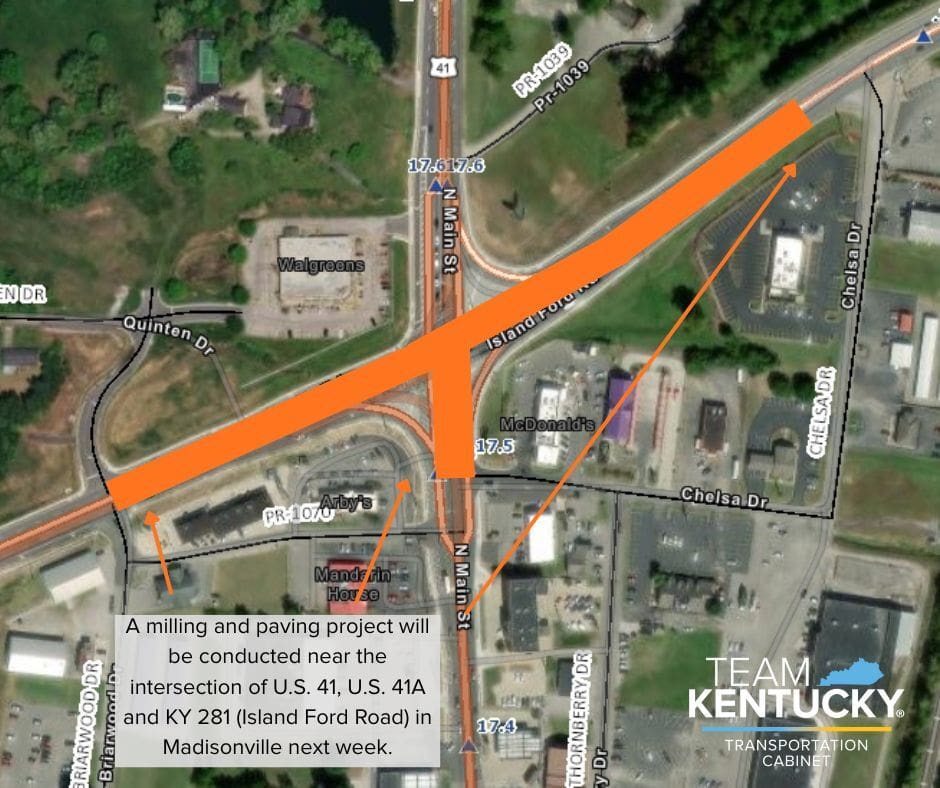 Road work to happen at U.S. 41, 41A and KY 281 in Madisonville next week