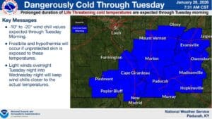 Meteorologist Andy Lesage with the National Weather Service in Paducah says everyone is feeling the impacts from that winter storm, and we’ll continue to feel them all the way into next week, as temperatures will barely reach freezing, and wind chills will bring things down into the negatives.