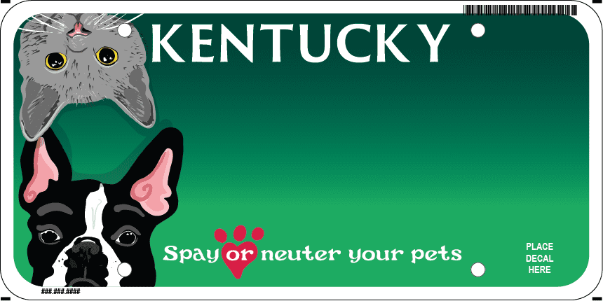Playful updated license plate promotes spay, neuter efforts across Kentucky