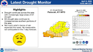 That’s not great news for our drought conditions, as our rain this past weekend could have really used the back of more rain to bust that drought. Meteorologist Kate Hickford with the National Weather Service says rain chances move back in on Thursday, but they’re slight, and temperatures are going to warm right back up.