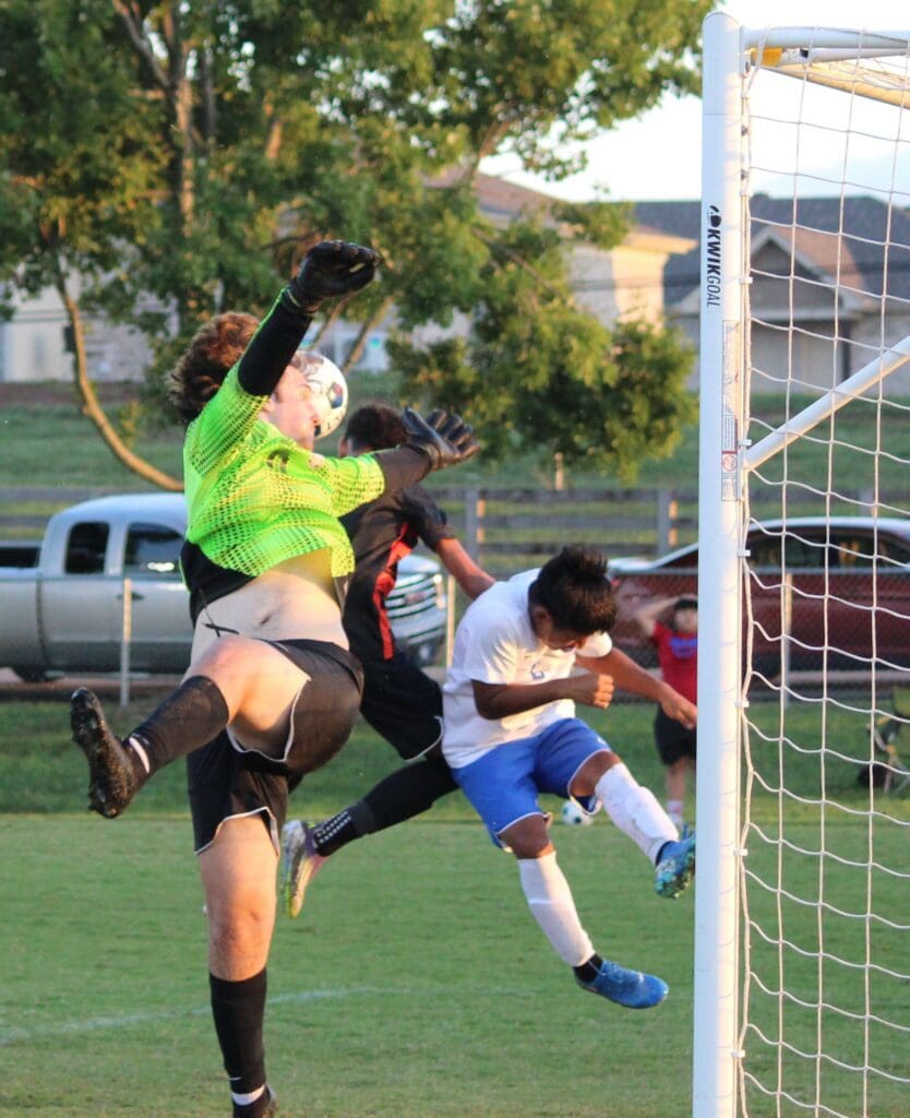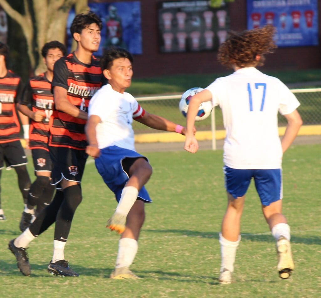 Christian County goal keeper Preston Gentry turned away several shots before Anthony Evangelista scored off a corner kick to push the lead to 2-0 with 29:20 left in the first half.