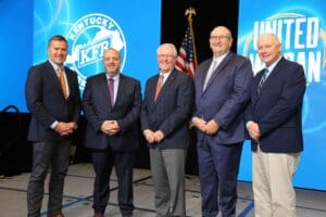 That vote occurred at the KFB’s 106th annual meeting recently, where they not only re-elected the Webster County farmer—Melton—to continue his service as president, but they also re-elected Shane Wiseman of Clark County to continue serving as First Vice President and Larry Clark of Green County to keep serving as Second Vice President.