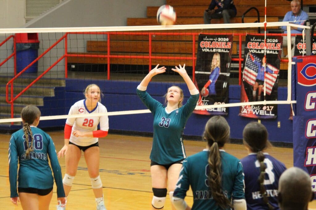 The two teams battled back-and-forth in the first set before a late 5-2 run by the Lady Colonels pushed them into a 23-19 advantage. Kaidence Atwell had back-to-back kills to finish off the Lady Warriors (15-18).
