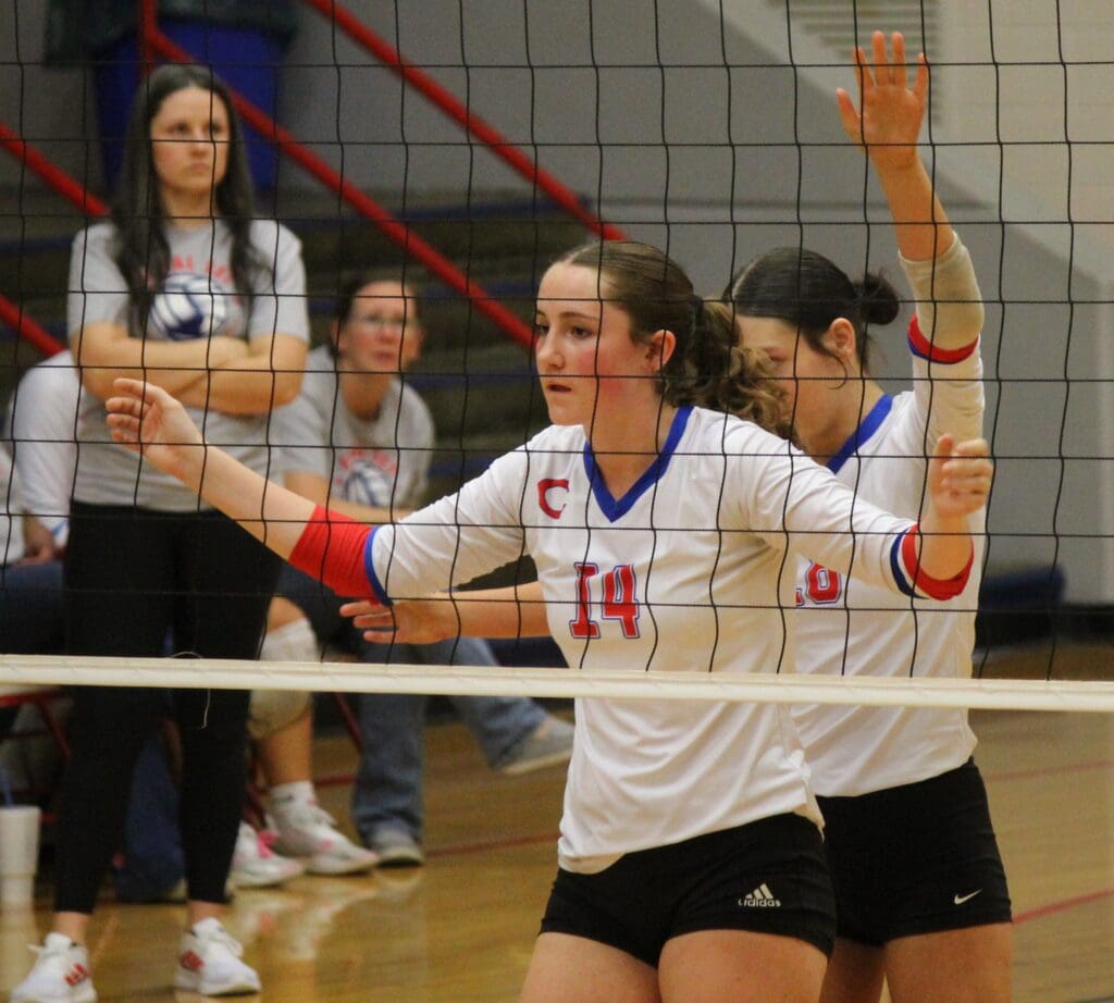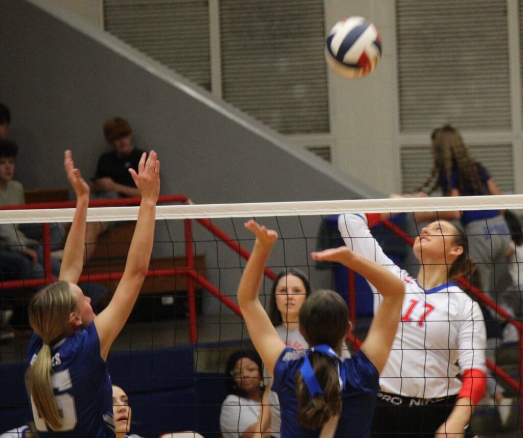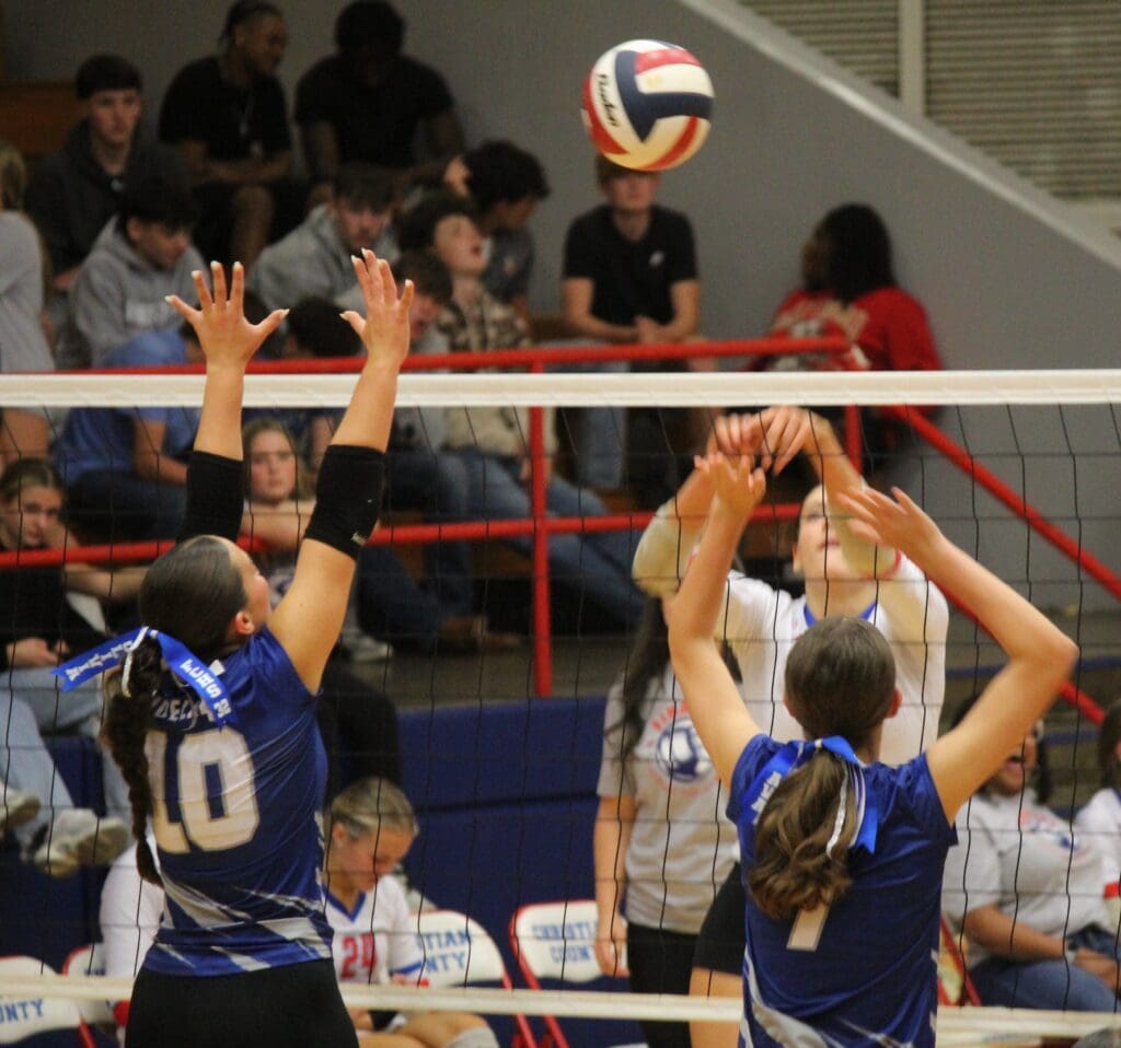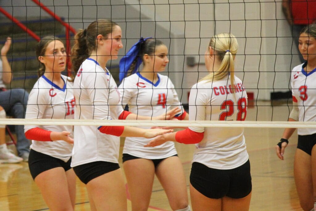 The Christian County Lady Colonels accomplished three wins in one match Tuesday night when they defeated visiting Fort Campbell in a District 8 Volleyball game.
