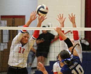 The Christian County Lady Colonels accomplished three wins in one match Tuesday night when they defeated visiting Fort Campbell in a District 8 Volleyball game.