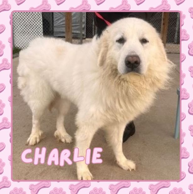 This gentle giant is Charlie, and he’s a 5-year-old Great Pyrenees mix who is ready for a fresh start. He gets along with other dogs and he even gets along with his feline friends. He is a calm dog who would like to work, so he would do great a farm with livestock!