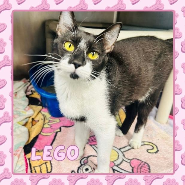 Lego is calm and sweet and patient, with a gentle, snuggly personality. She gets along with other cats and loves people of all ages–she’d probably even get along with a dog sibling. This 3-year-old is looking for a family that loves to play and cuddle together!