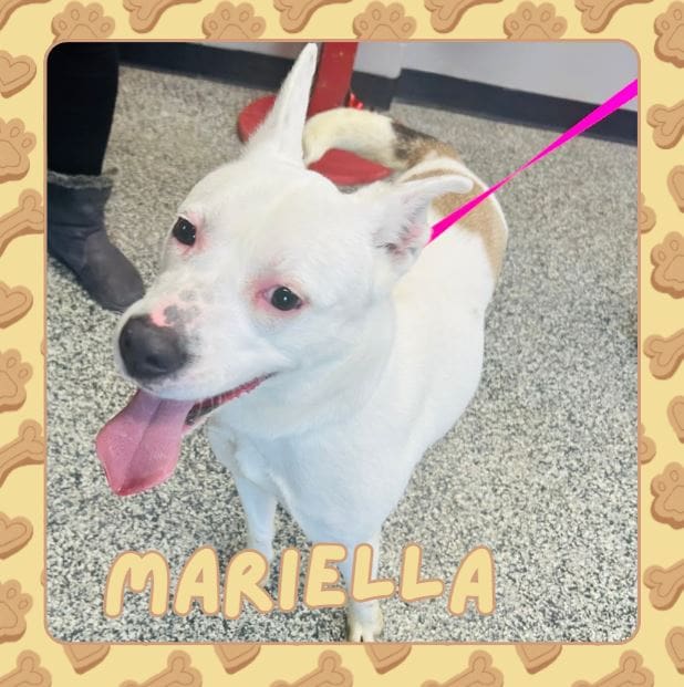 Guess who’s back! It’s Mariella! How is it possible that this sweet girl is still at the shelter? This one-year-old Pit mix has been at the facility since August, so it’s well past time for her to find a home of her own. She gets along with other dogs and has plenty of energy for running and playing!
