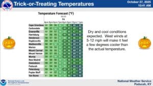But don’t worry trick-or-treaters—Forecaster Rachel Trevino with the National Weather Service in Paducah says they’re expecting it to be mostly dry and seasonal on the big day itself.