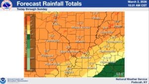 Forecaster Rachel Trevino with the National Weather Service in Paducah says every day will have rain possibilities, but the best chances will be on Wednesday and Friday, with some storm chances possible as well.