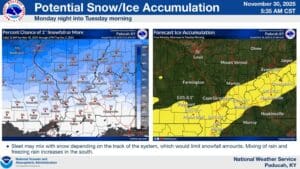 We officially have our first real chance for wintry precipitation to start the work week out, as the National Weather Service in Paducah is watching a weather system that could bring a mix of wintry weather to our area. That’s according to Meteorologist Justin Gibbs, who says they have their