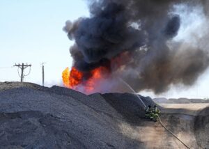 A large vehicle fire at Byard Construction and McAsphalt in Clarksville shutdown the roadway for a short time as fire fighters battled the blaze. Crews were called to the construction facility on Kraft Street at just before noon for reports of a fire and arrived to find a 2,000-gallon tanker