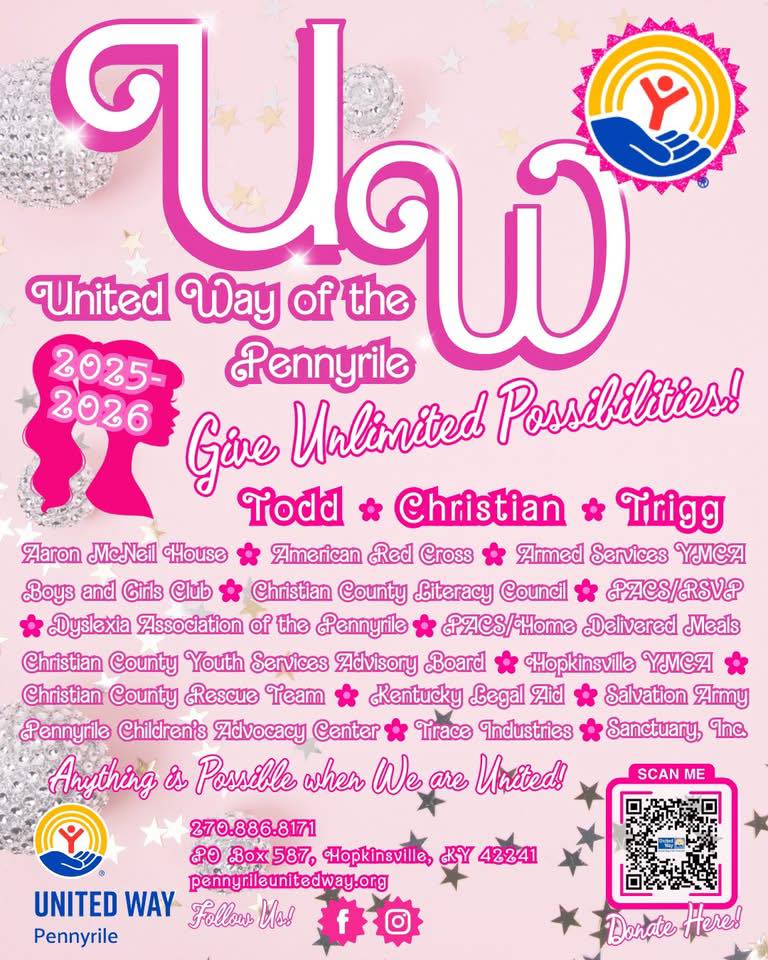 The local United Way supports 16 partner agencies across Christian, Todd and Trigg counties. Some of the partner agencies include Aaron McNeil House, Inc., the Dyslexia Association of the Pennyrile, Sanctuary, Inc., the Boys and Girls Club of Hopkinsville and the Christian County Rescue Squad.